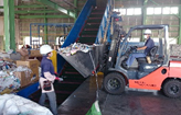 ★水俣リサイクル施設では、回収された古紙を素材ごとにプレス機にて圧縮、梱包し 「再生資源」として製紙工場へ出荷します。